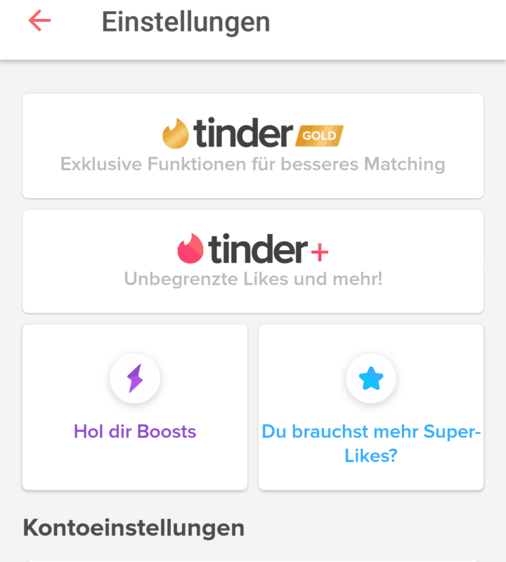 Willst du nicht direkt ein komplettes Abo abschließen aber dennoch einige der Premium Features wie etwa Boost oder Super-Likes nutzen, dann kannst du diese Funktionen auch einzeln oder in Paketen kaufen.