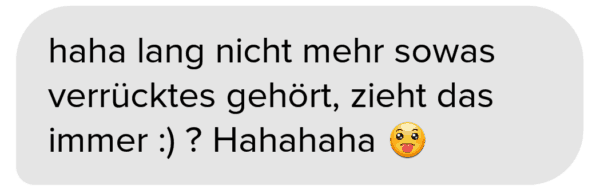 Sie: Könnte ich den ganzen Tag haben hahaha :-) (2. positive Antwort)