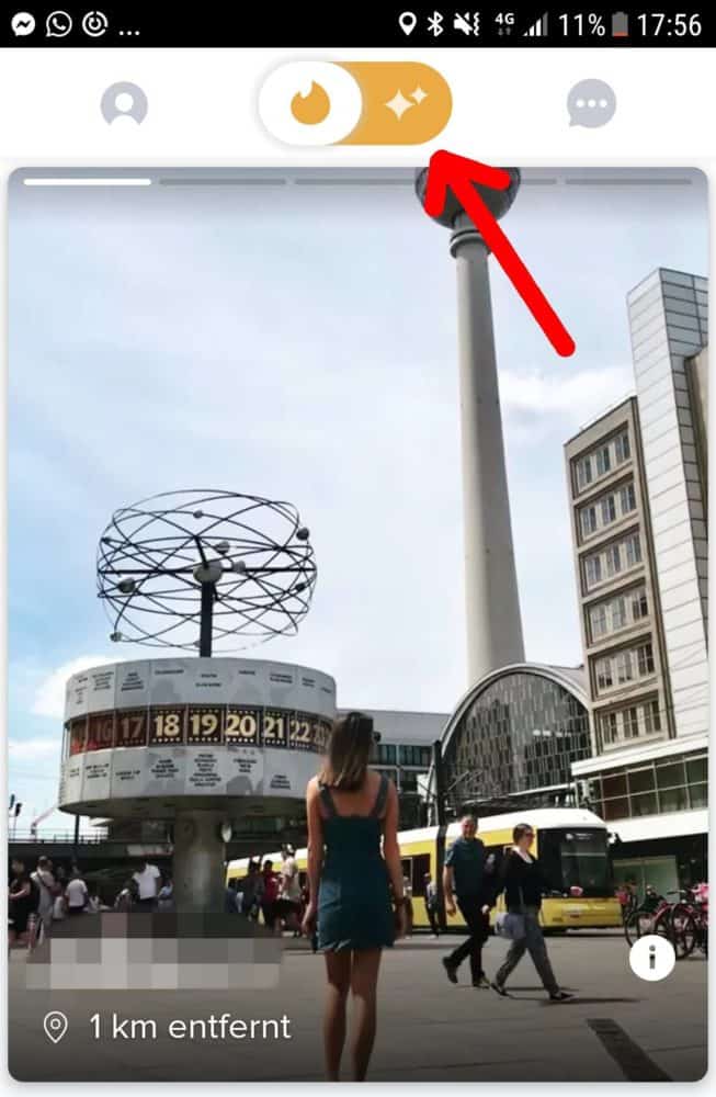 Hast du kein Tinder Gold, siehst du oben neben der Flamme statt des Diamanten jetzt die Anzahl deiner Likes, also wie viele Personen dich bereits mit Like markiert haben. Und auf diese Zahl musst du tippen, wenn du deine Top-Picks sehen willst.